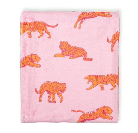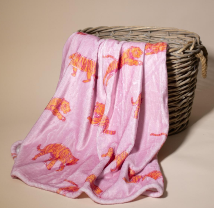 Unleash a fierce touch of style with the Tiger Walk Throw in pink! Featuring playful tigers strolling around the soft,...
