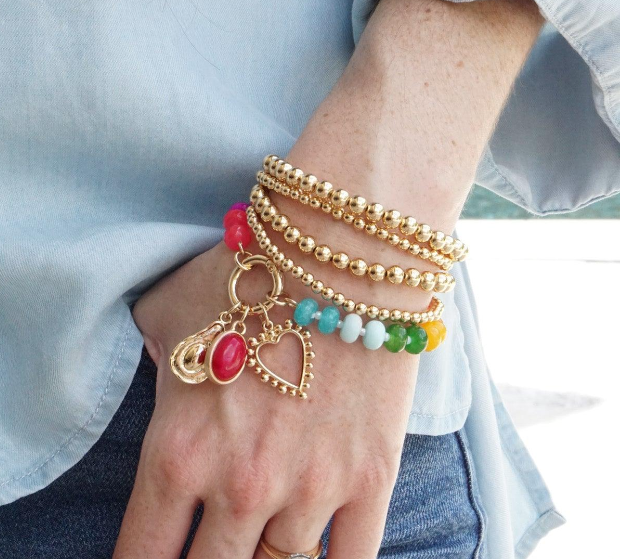 The adjustable cord bracelet is designed to fit everyone, featuring delicate 3mm gold-plated beads paired with a mother-of-pearl symbol. Beautifully...