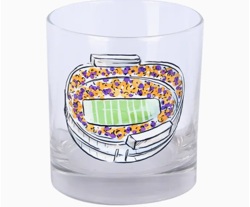 Enjoy your favorite cocktail or liquor with our Louisiana LA State Spirit Stadium Rocks Glass, a unique creation by Barrel...