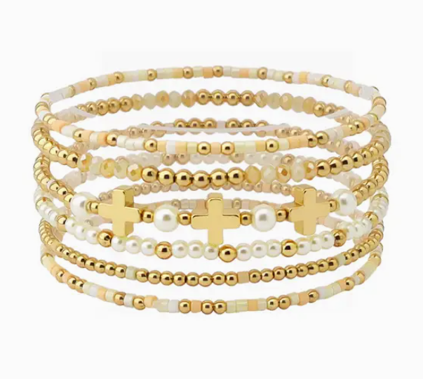 Set of 4 Glass Bead and Gold Stretch Bracelets. Great for GameDay!