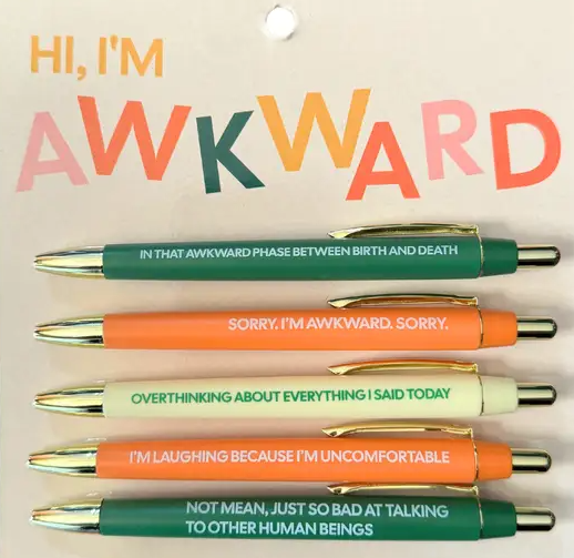Set of 5 black Ink Ballpoint Pens- IN THAT AWKWARD PHASE BETWEEN BIRTH AND DEATH SORRY. I'M AWKWARD. SORRY OVERTHINKING...