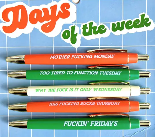 Set of 5 black Ink Ballpoint Pens MOTHER FUCKING MONDAY TOO TIRED TO FUNCTION TUESDAY WHY THE FUCK IS IT...