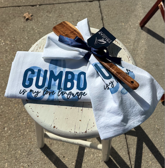 This ceramic spoon rest features our new “Gumbo” design. Artwork includes images and words associated with the famous Louisiana dish.