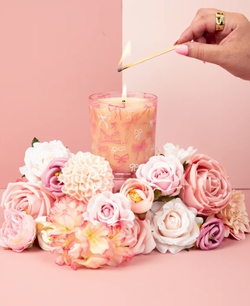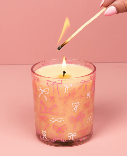 Add a touch of sweetness with the Sweet Grace Bow Candle! This adorable candle features pink and white bow decals...