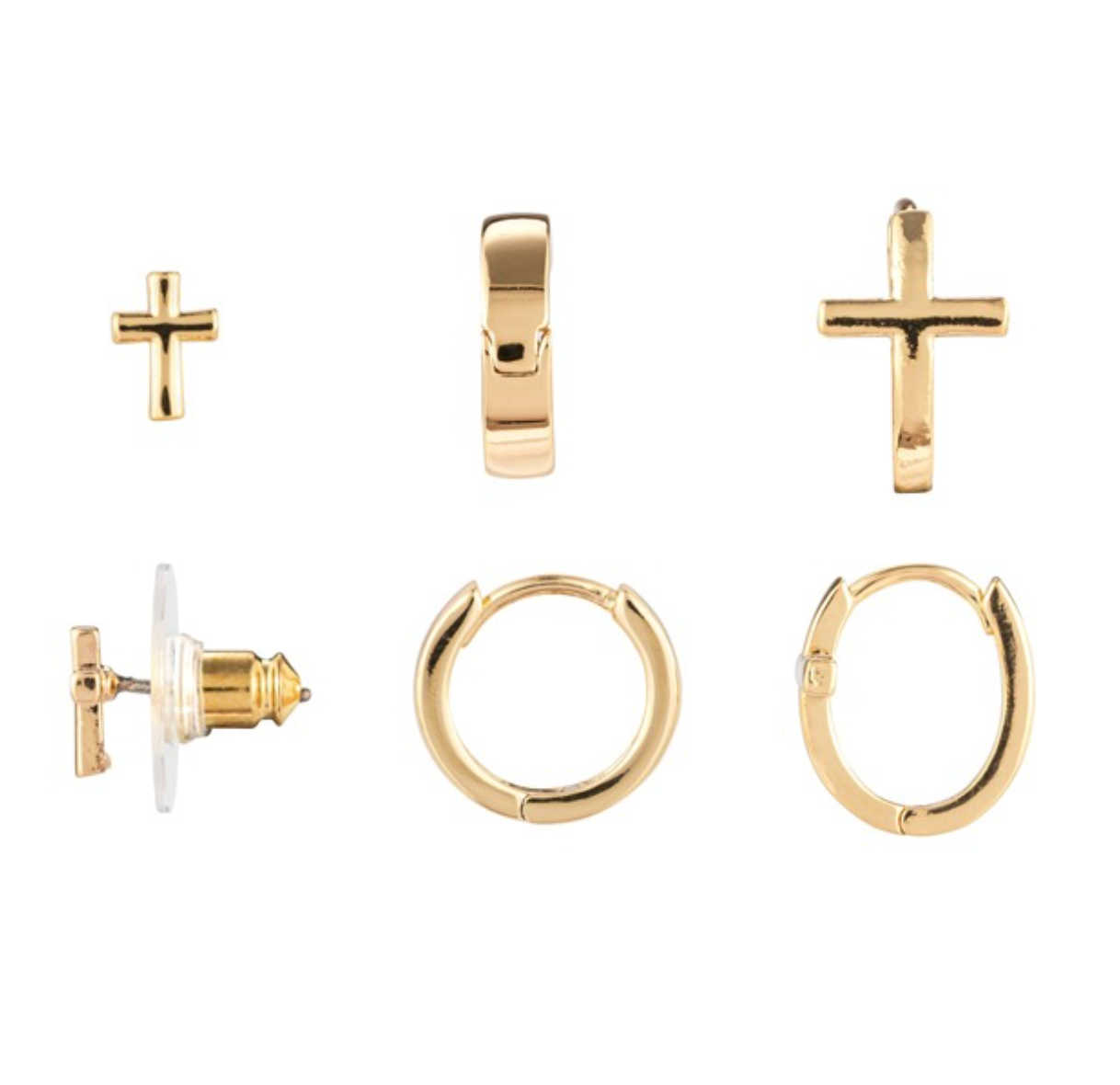 Dainty Cross Earrings Set of 3 - Gold celebrates everyday moments in wearable and shareable ways - reaffirming our beliefs...