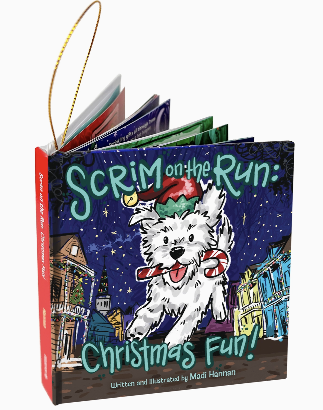 This miniature book of Scrim on the Run: Christmas Fun! to hang on your tree tells the true story of a scraggly little white terrier named Scrim that captured the hearts of New Orleanians when he was on the run in the city for many months; he even jumped out of a second story window after he was apprehended! A portion of all book sales will be donated by the author to local animal rescues and animal welfare organizations.
