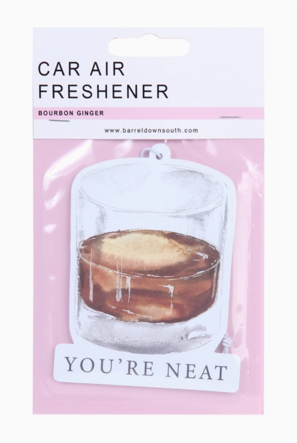 Experience the unique southern charm with our 'You're Neat Bourbon Whiskey' Car Air Freshener. It's not just an air freshener; it's an experience, bringing the rich aroma of bourbon whiskey into your car. Elevate your everyday drive with this charming fragrance. Drive with style, drive with Barrel Down South.